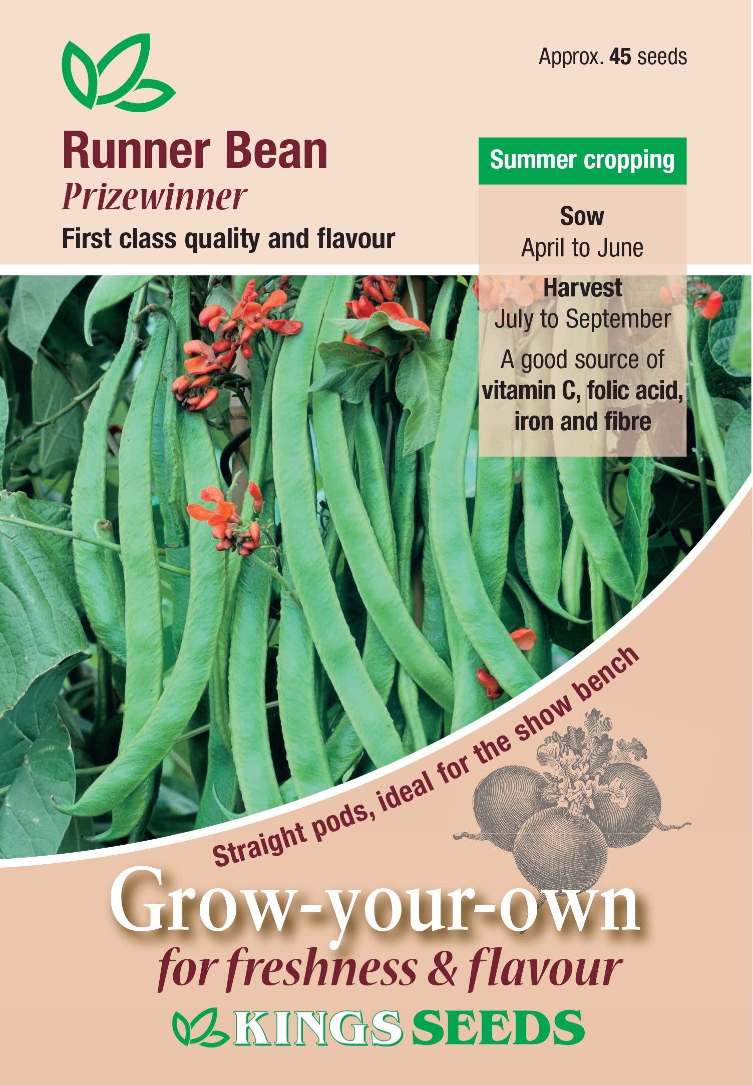 Kings Seeds Runner Bean Prizewinner 45 Seeds – Reduced Short Sow By Date Sept 2024